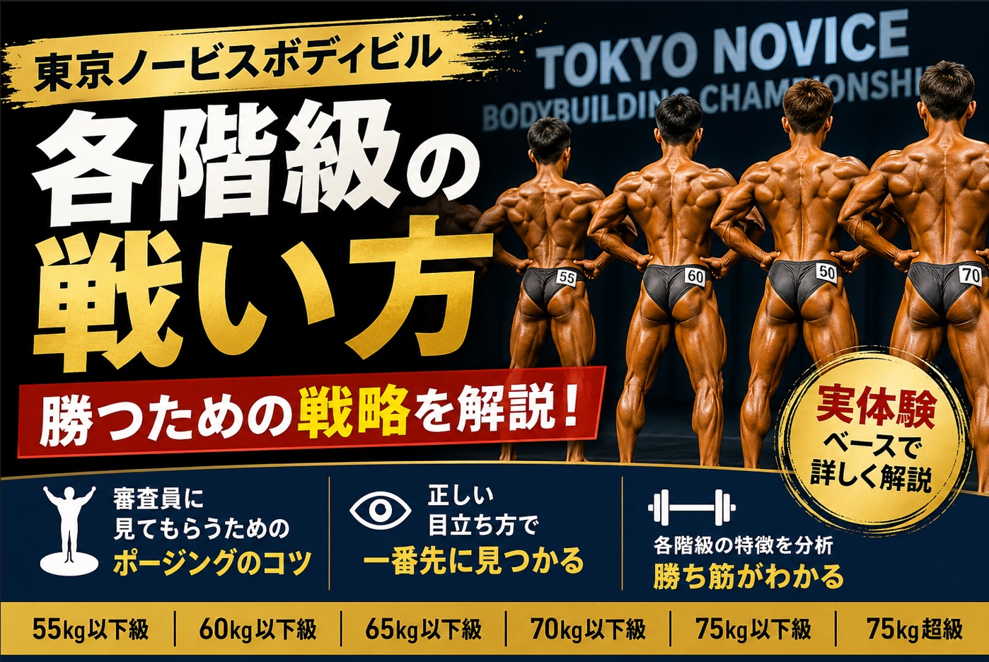 ここまで、東京ノービスの男子ボディビル各階級について、自分なりの戦い方を整理してきました。